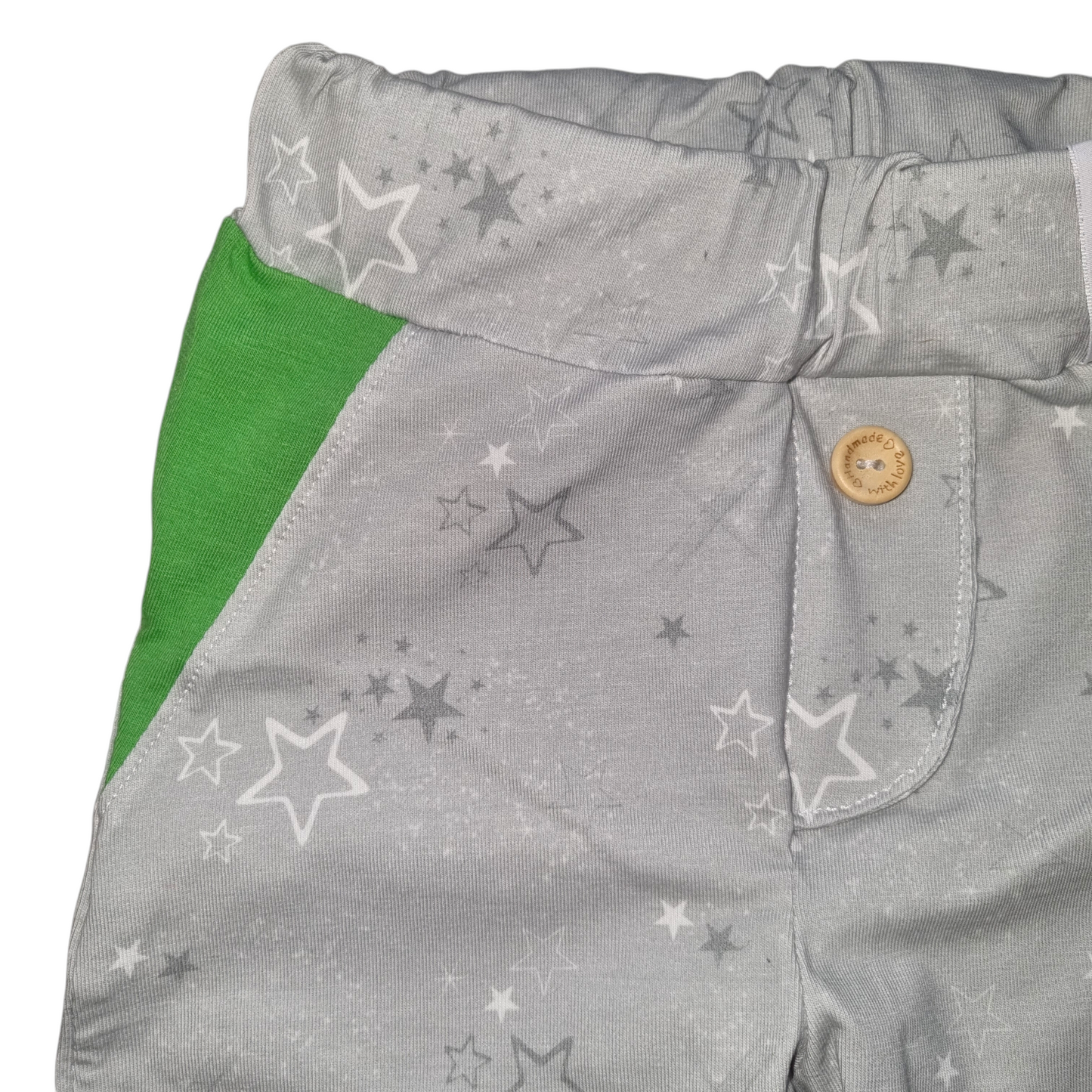 Diese "Zwischendrin-Hose" ist bequem wie eine Pumphose, aber nicht so weit sitzend. Sie passt überall hin und ist perfekt für kleine Entdecker. Mit Fake-Taschen, -Knopfleiste und Gummibund am Bauch ist sie bequem und stylisch zugleich.